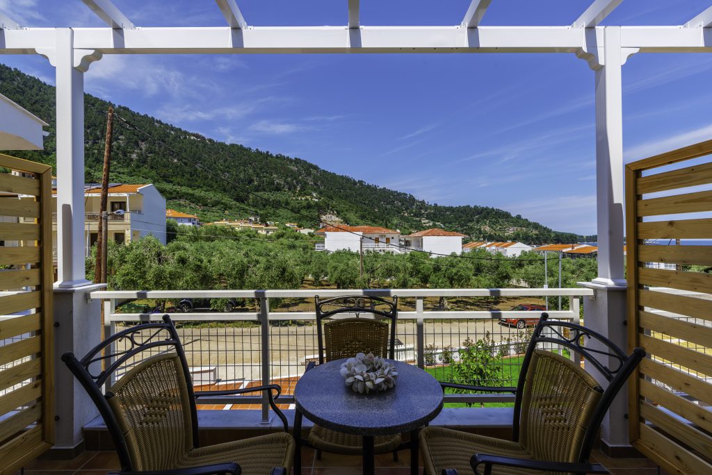 Our mesonette apartments can accommodate from 2-4 people. They feature one bedroom and one sofabed/bed on the lounge area, Kitcenette, private balcony, satellite TV, A/C , hairdryer, toiletries.